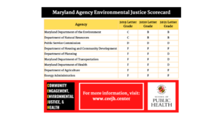 Maryland Holding Maryland Accountable for Environmental Justice - New Scorecard Ranks State Agencies October 6, 2022
