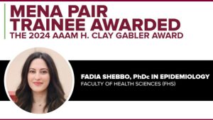 AUB Fadia Shebbo, PhD Student at FHS-AUB, Awarded Prestigious 2024 AAAM H. Clay Gabler Scholar’s Award January 16, 2025
