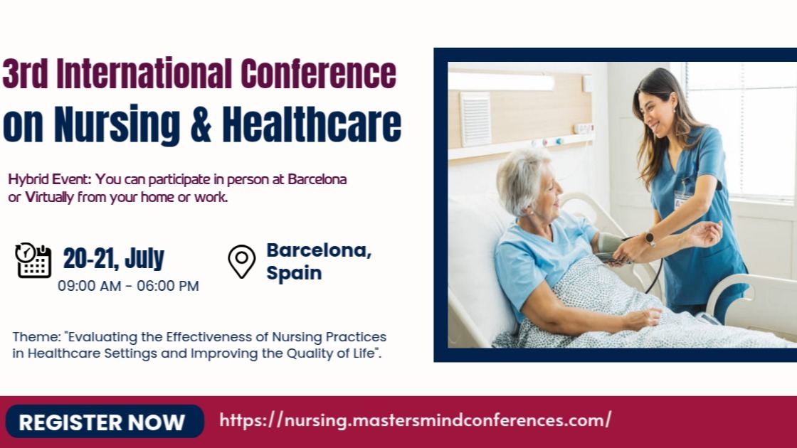 Join the 3rd International Conference on Nursing & Healthcare, taking place July 20–21, 2026 in Barcelona, Spain, and be part of a global gathering of nursing and healthcare professionals. Under the theme “Evaluating the Effectiveness of Nursing Practices in Healthcare Settings and Improving the Quality of Life”.