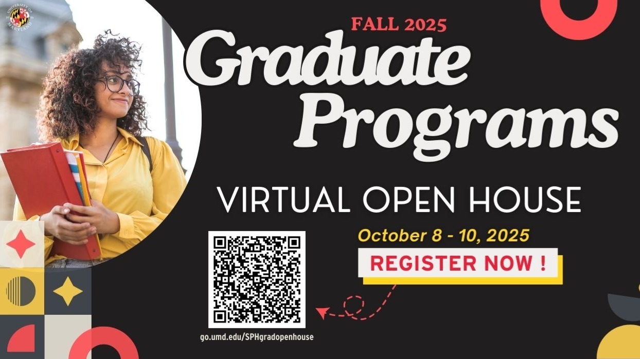 Are you interested in furthering your education with a graduate degree in public health and finding a fulfilling career that will truly make a difference in the world? Join the University of Maryland School of Public Health for our 2025 Graduate Programs Virtual Open House and learn how we can support you on your journey to making an impact in public health.