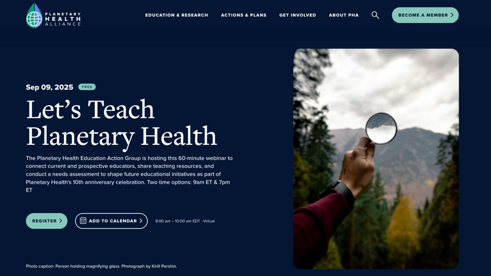 The Planetary Health Education Action Group is hosting this 60-minute webinar to connect current and prospective educators, share teaching resources, and conduct a needs assessment to shape future educational initiatives as part of Planetary Health’s 10th anniversary celebration. Two time options: 9:00 AM ET and 7:00 PM ET.
