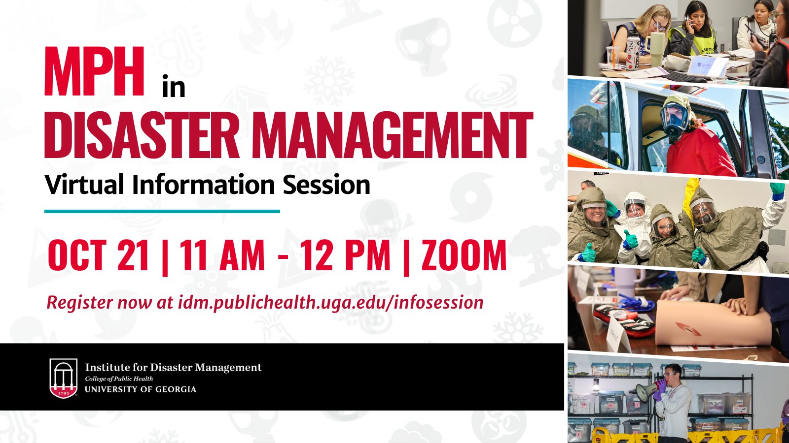 Discover how the University of Georgia turns leaders in the classroom into leaders in crisis with an MPH in Disaster Management. In this virtual information session, you’ll hear directly from faculty and current students about program highlights, admissions tips, career opportunities, and more. Learn about requirements, resources, and the many ways to get involved.