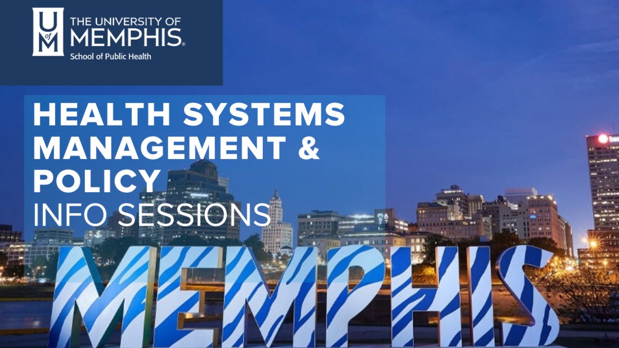 Explore health systems management and policy at The University of Memphis School of Public Health! Learn how leadership, policy, and innovation shape healthcare delivery and public health outcomes. Meet faculty, discover academic pathways, and explore how this field prepares you to drive meaningful change in health systems. Join us for this insightful session!
