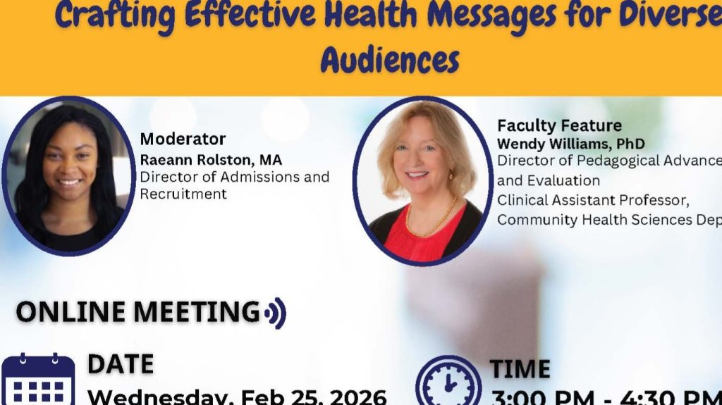 Discover how SUNY Downstate School of Public Health prepares you to culturally respond to messages that can influence behavior, improve outcomes, and advance health equity across diverse communities.• Learn strategies