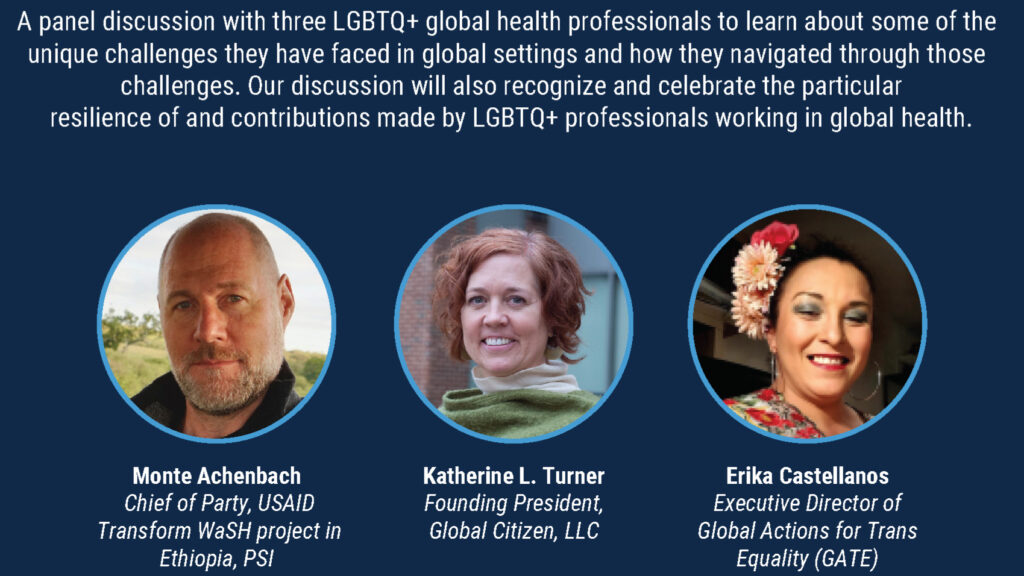 This panel discussion will feature three LGBTQ+ global health professionals sharing some of the unique challenges they have faced in global settings and how they navigated those challenges. Our discussion
