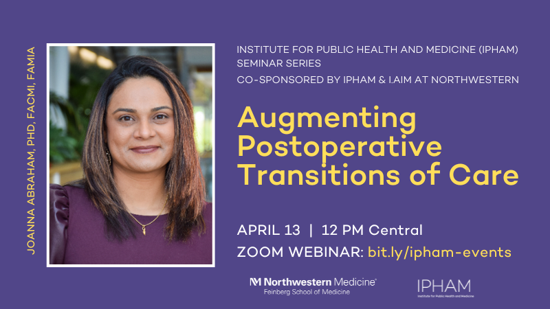 In this talk, Joanna Abraham, PhD, will discuss her ongoing research on postoperative patient care transitions. Informed by contextual inquiry approaches and mixed methods, she conducted a series of studies