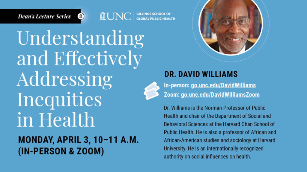 Dr. David Williams, an internationally recognized authority on social influences on health, is the Norman Professor of Public Health and chair of the Department of Social and Behavioral Sciences at