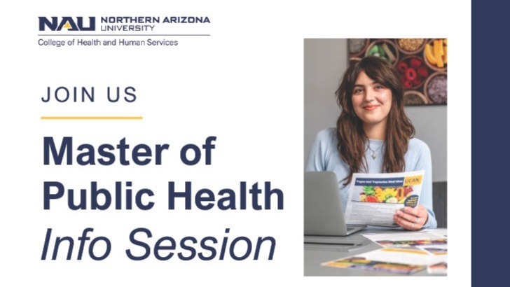 Join us to learn more about applying to the Northern Arizona University MPH program, available concentrations/emphases, career outlook, and more! The event will be entirely over Zoom. Come chat with