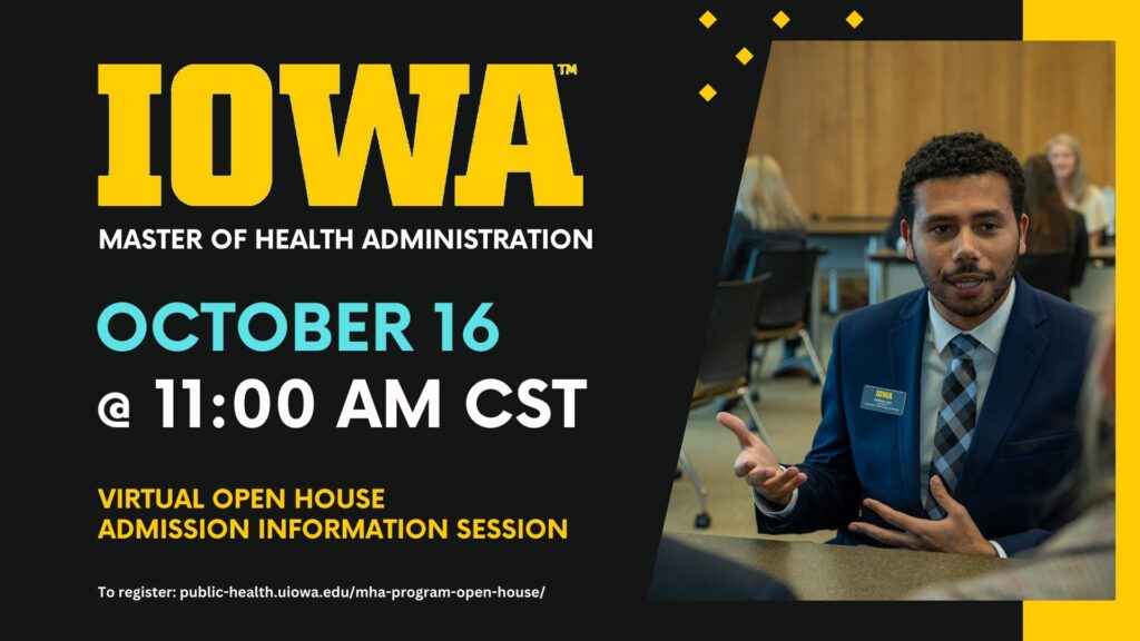 We invite you to join us to learn about careers in healthcare administration and how the University of Iowa’s historic and #14 ranked Master of Health Administration degree can help