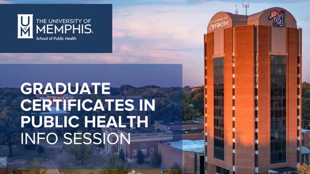 Join us for an informative session about The University of Memphis School of Public Health certificate programs for prospective students! Learn about academic pathways, meet our faculty, explore program offerings,